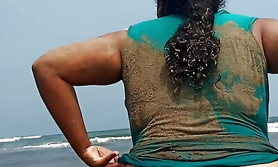 dark-hued milf with hairy pussy enjoy bbc at beach