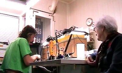 Mature CFNM babe stroking big cock