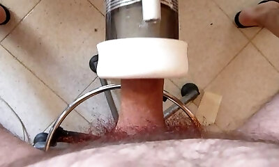 Uncut Penis in Getting Off Machine with cumshot