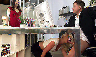 Hot and super-steamy foreplay with Sarah Vandella at her workplace
