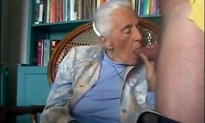 oma stöhnt, als sie nach dem lutschen eines riesigen schwanzes einen harten fick bekommt